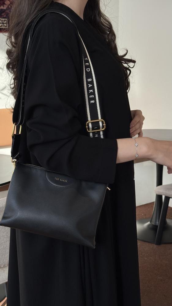 - التصميم الكلاسيكي للكتف يضفي لمسة فخامة راقية تليق بالمرأة العملية والأنيقة، ويمنح العباية انسيابية طبيعية في نزولها.