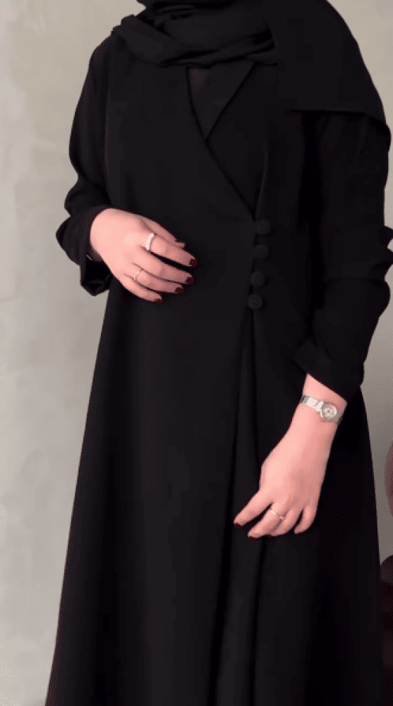 - تصميم الكتف البسيط يخلي العباية تنسدل بشكل انسيابي مريح ويضيف لها لمسة كلاسيكية تظل مناسبة مهما تغيّرت الموضة.